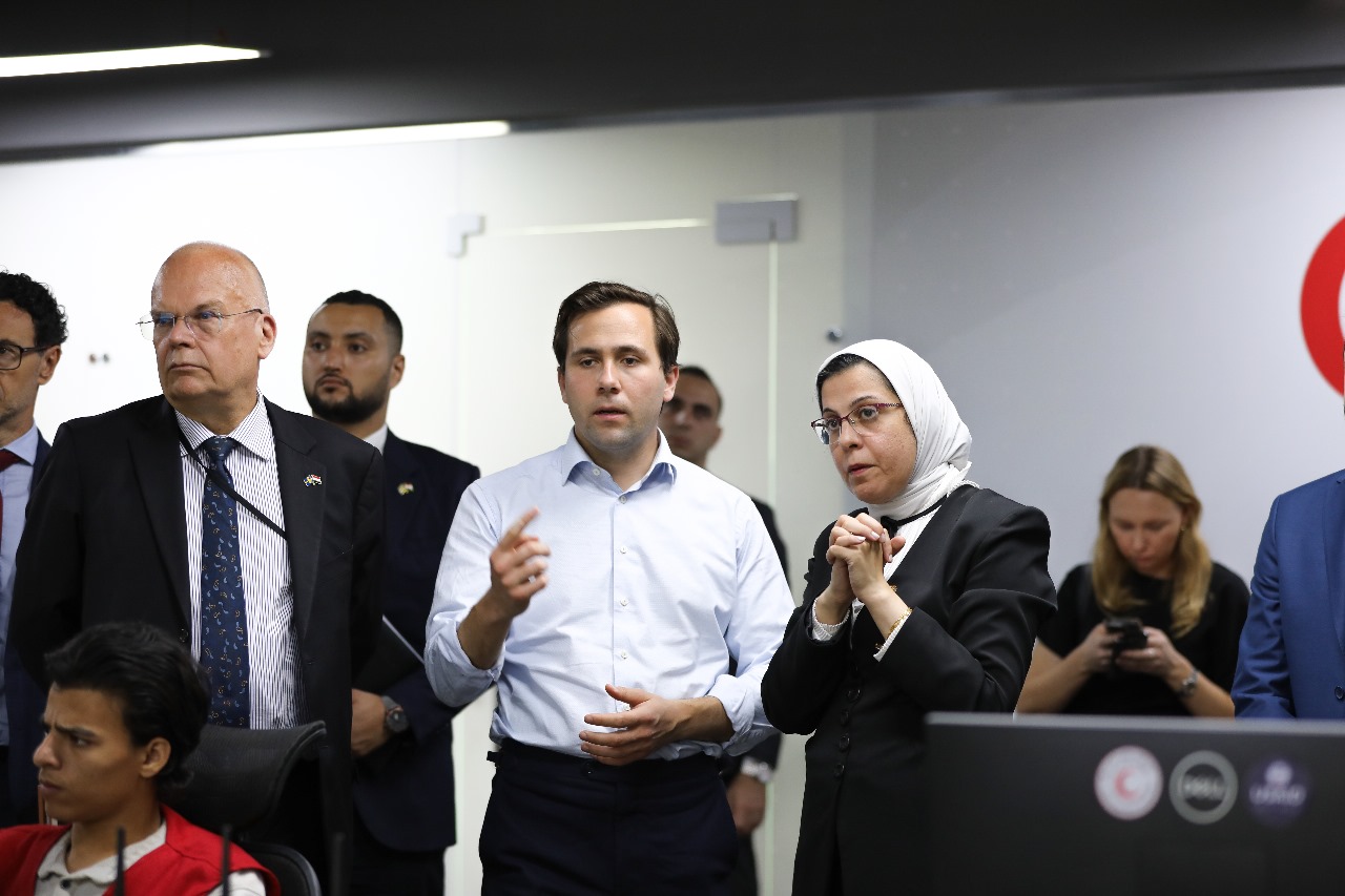 -اصطحبت المدير التنفيذي للهلال المصري الوزير السويدي والوفد المرافق له بحضور رئيس بعثة اللجنة الدولية للصليب الأحمر بالقاهرة ألفونسو فيردو بيريز، وممثلة الاتحاد الدولي للهلال الأحمر والصليب الأحمر بالقاهرة إيملي جولر، في جولة تفقدية لغرفة العمليات المركزية، واستمع إلى وكيفية متابعة فرق متطوعي الهلال الأحمر على المعابر، وآلية عمل الغرفة على مدار 24 ساعة، وكيفية التعامل مع الأزمات من المتابعة والإبلاغ، موضحة أن الغرفة مجهزة على أعلى مستوى بأحدث الوسائل التكنولوجية وتعمل كمركز رصد و تنبؤ.