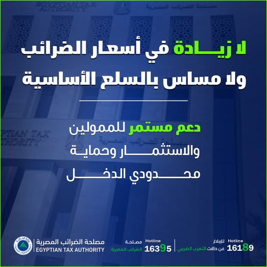قالت مصلحة الضرائب المصرية، إنه تم إجراء بعض التعديلات المحدودة على ضريبة القيمة المضافة بغرض توسيع القاعدة الضريبية وإصلاح بعض التشوهات، وذلك دون المساس بالإعفاءات الضريبية للسلع الأساسية والغذائية والخدمات الصحية والتعليمية.