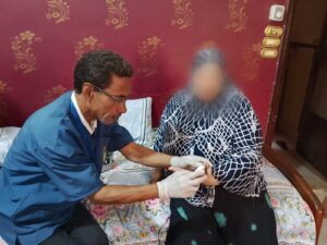 – وتم خلال هذه الزيارات تقديم حزمة من الخدمات الطبية ،تتضمن الكشف على أمراض “الضغط، والسكر، وأمراض القلب، والإعتلال الكلوي، وأمراض الجهاز الهضمي، وأمراض سوء التغذية كالأنيميا والسمنة”، بالإضافة إلى التقييم النفسي والتغذوي، ويتم ذلك من خلال الفحص الإكلينيكي العام، وحساب مؤشر كتلة الجسم، وفحص النظر، والفم والأسنان، بالإضافة لعمل تحاليل نسبة الهيموجلوبين ومستوى الدهون والكوليستيرول بالدم، ووظائف الكلى والسكر التراكمي، وكذلك إجراء فحص رسم القلب وفي حالة إيجابية النتائج يتم تقديم العلاج اللازم أو إحالة الحالات المرضية التي تستدعي تدخلات طبية متقدمة للمستشفيات التابعة للمديرية، هذا بجانب تقديم خدمات التثقيف الصحي والدعم النفسي والمشورة التغذوية اللازمة لكبار السن