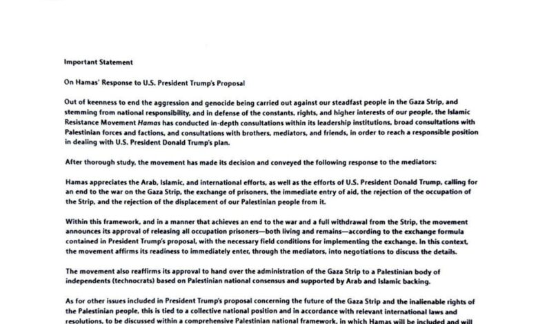 ترامب ينشر رد حماس الذي وصل البيت الأبيض على خطّته