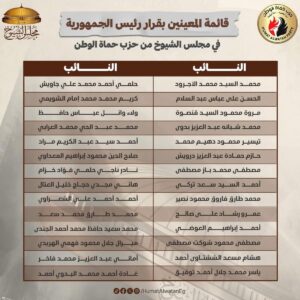 – وقد جاءت القائمة الوطنية معبرة بصدق عن أهمية المرحلة المقبلة حيث تضم القائمة الوطنية وجوهًا مشرفة حملت على عاتقها راية العطاء والعمل العام، ومن أبرزهم :