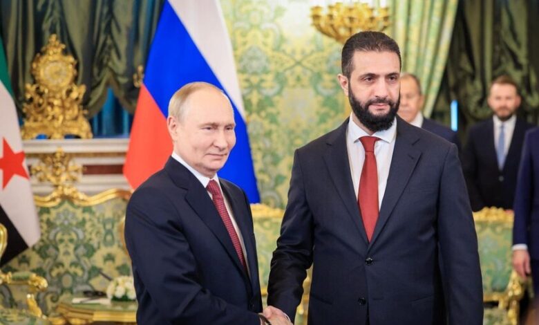 وأجرى بوتين والشرع محادثات مغلقة بمشاركة عدد محدود من المسؤولين. وأشار الرئيس الروسي إلى أن العلاقات بين روسيا وسوريا كانت دائما ذات طابع ودّي للغاية.