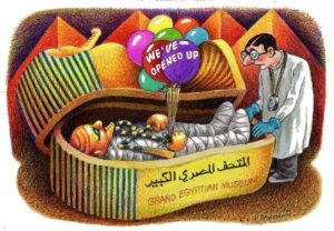 –وأكد الدكتور وليد قانوش، رئيس قطاع الفنون التشكيلية، أن هذا المعرض يأتي ضمن خطة القطاع الهادفة إلى إبراز أهمية المتاحف ودورها التنويري، وتسليط الضوء على ما تمتلكه مصر من رصيد ثري من المتاحف الثقافية والفنية والتاريخية والقومية والنوعية، إلى جانب غرس قيم احترام التراث والحفاظ على الهوية المصرية من خلال تعزيز الوعي بأهمية مقتنيات هذه المتاحف. كما شدّد قانوش على اهتمام القطاع بفن الكاريكاتير بوصفه أحد الفنون القادرة على تبسيط المفاهيم الثقافية وخلق تواصل حي مع الجمهور عبر لغة بصرية مؤثرة وسهلة الوصول.