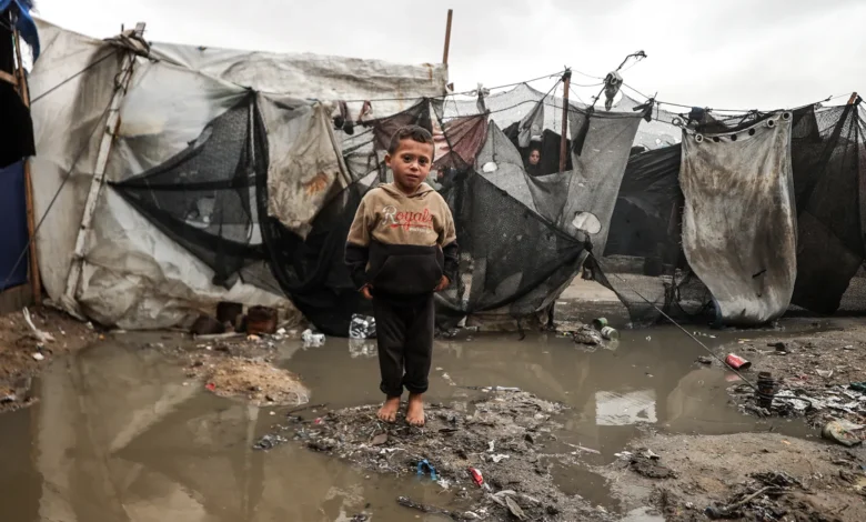 250 ألف أسرة بغزة تعاني في مخيمات النزوح نتيجة الأمطار